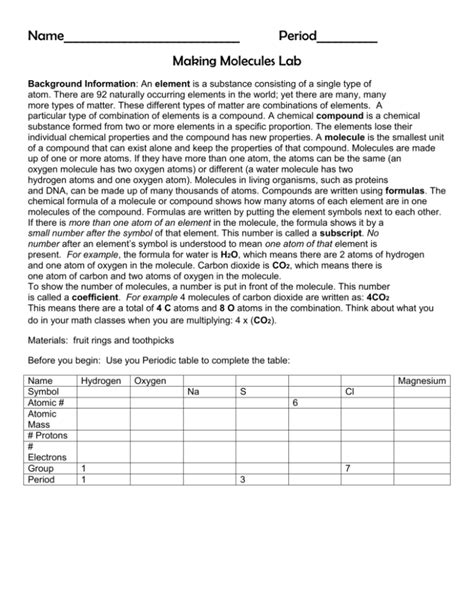 Web the formulas of organic molecules are written in a manner to show the arrangement of atoms that are common to the functional class of compounds; In this making molecules worksheet, students complete a table of. Mighty molecule building name _____ most atoms are unstable by themselves, so they bond with other atoms in certain patterns to become.