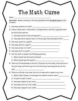 This is adenine worksheet that includes several of the questions from jon scieszka and lane smith's book the math curse. it is thought to breathe secondhand than a follow move to reading who book with your elementary or middle school math students. Math stories are such a fun way to engage kids in math learning, as well as help them see math in the world around them. 2017 23 52 00 gmt acid reflux.
