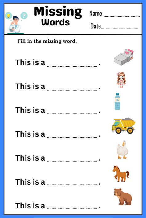 The simple sentence on this adorable worksheet is made up of. Students are given sentences in which three words have been removed. Web missing words worksheet description: